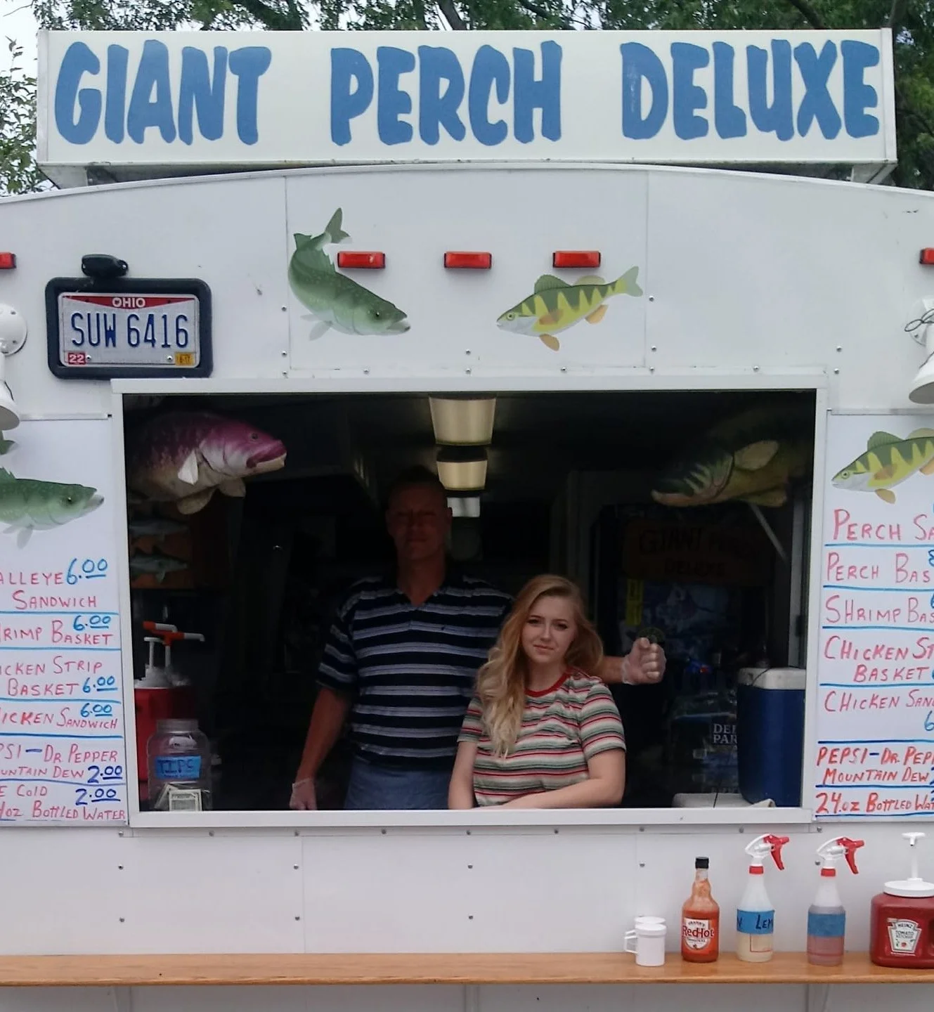 We are a traveling food stand in many festivals and fairs in the Erie and Lorain County area serving perch & walleye baskets/sandwiches, shrimp baskets, chicken strip baskets, mushroom baskets, chicken sandwiches, fries, cheese fries, nachos & cheese, pop, and water